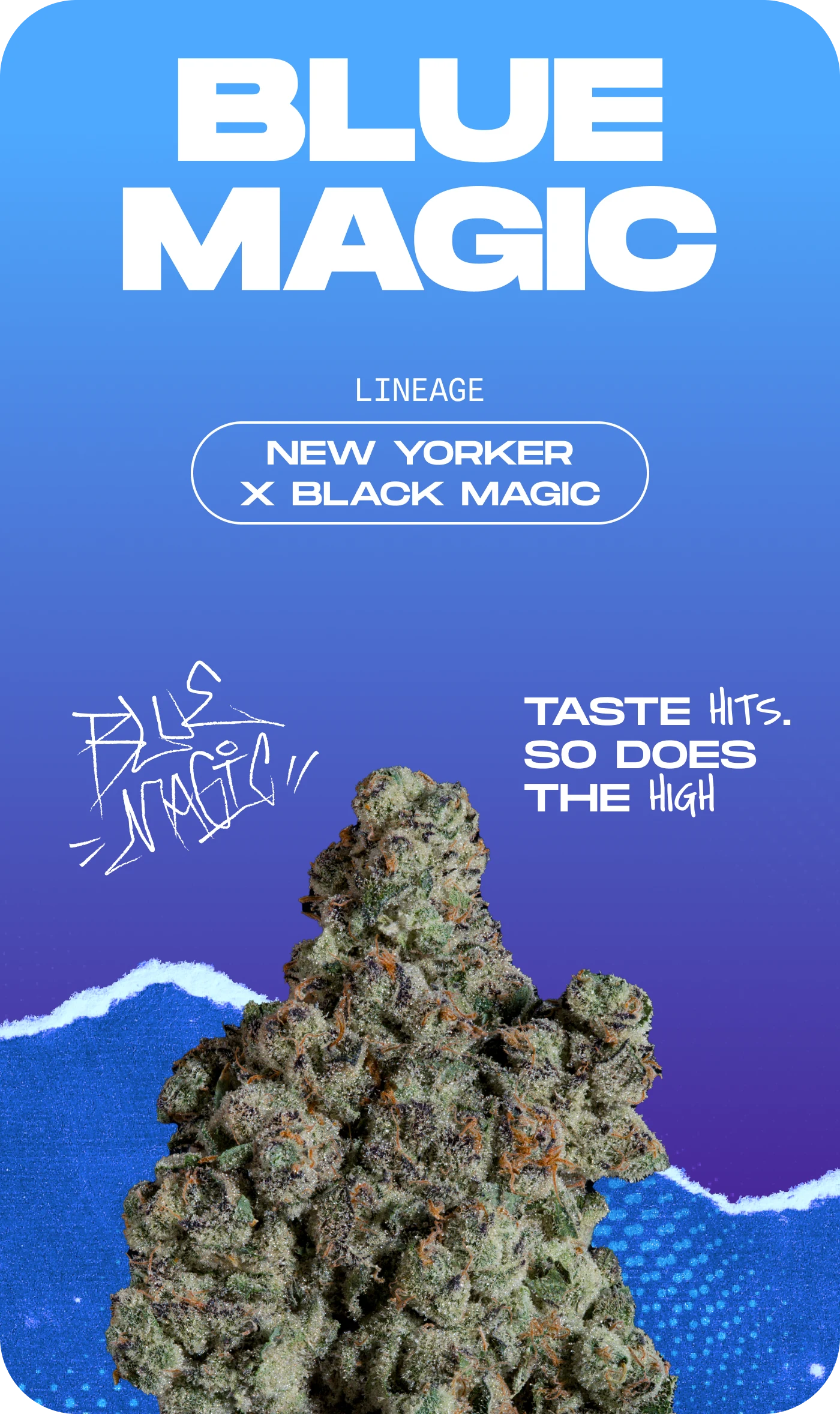 Blue Magic brings gas into a new lane. We took our New Yorker cut a heavy Sour D leaner and hit it with Blackmagic to push things further. It’s gassy on both ends, but the combo adds depth, color, and insane potency. The profile’s complex, not quite Sour, not quite Blackmagic but something new that hits hard and stands out. Think old-school gas with a modern Wizard twist. Updated bag appeal, real power, and a fresh take on a classic. A must-try for anyone who thinks they’ve seen it all.