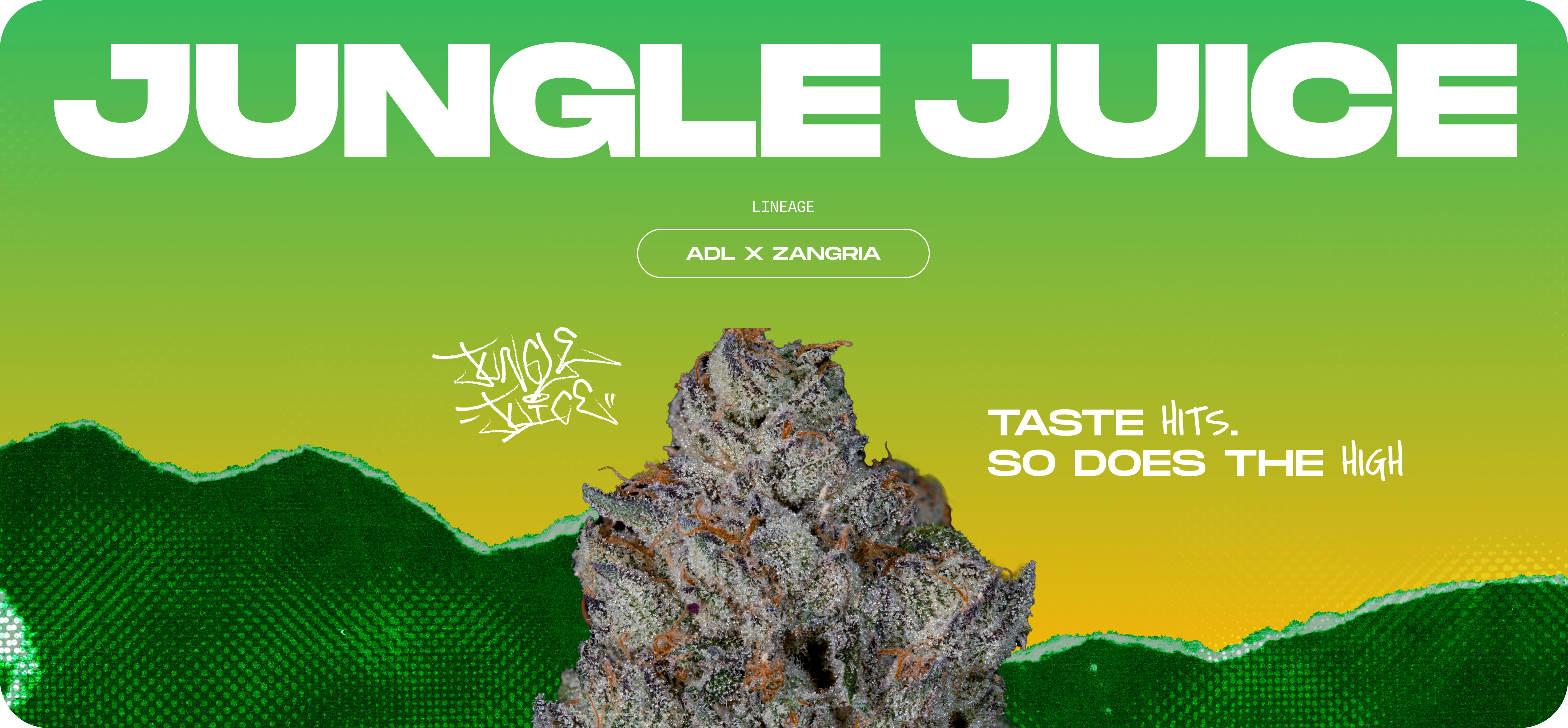 When someone asks for real candy gas—this is it. ADL, one of the loudest Lemon Cherry cuts we’ve ever touched, met our Zangria and the result was Jungle Juice. Loud, frosty, and colorful, with that unmistakable candy-forward nose and a gassy backbone that lingers. The nugs lean popcorn-style, with good color and resin that sticks. On paper it sounded like a hit—on the tables, it overdelivered. If you're chasing sweet terps with a little bite, Jungle Juice checks every box.